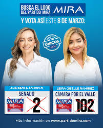 Tarjetón: Ana Paola Agudelo, Senado Mira, número 2 – Leira Giselle Ramírez Godoy, Cámara Mira, número 102